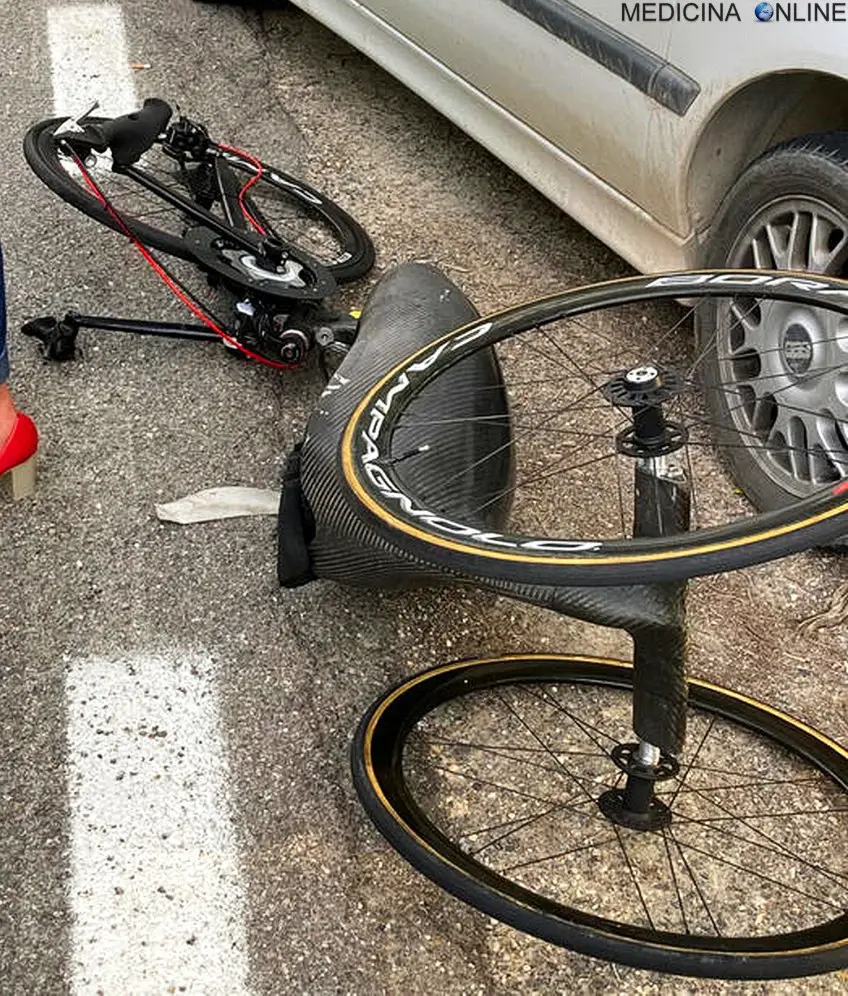 Alex Zanardi’s handbike after the road accident occurred in the province of Siena, during one of the stages of the relay of Obiettivo tricolore, a journey that sees the participants among Paralympic athletes in handbikes, bikes or Olympic wheelchairs, 19 June 2020.